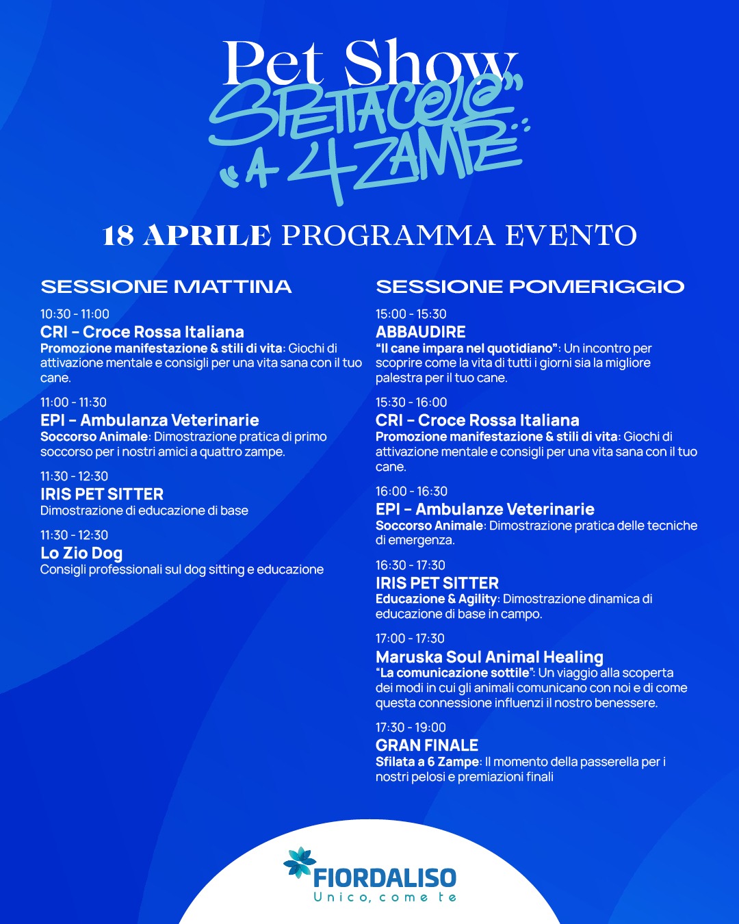 Al Fiorda arriva il Pet Show “Spettacolo a 4 zampe”, una giornata interamente dedicata agli amici a quattro zampe.